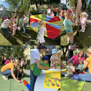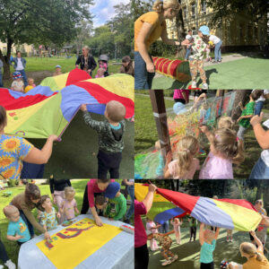 W piątek pod hasłem „Zdrowie ukryte w kolorach” przedszkolaki spędziły DZIEŃ PRZEDSZKOLAKA, dzień pełen zabawy i nauki. Dzieci dowiedziały się, jakie witaminy kryją się w owocach i warzywach, a następnie samodzielnie przygotowały zdrowe, kolorowe szaszłyki. Uczestniczyły także w radosnych zabawach z chustą animacyjną, malowały na stretchu oraz odcisnęły swoje dłonie na wspólnym, pamiątkowym plakacie. Dużo emocji dostarczył również kolorowy tor przeszkód, który każdy pokonał z wielkim zaangażowaniem. To był dzień pełen kolorów, ruchu i uśmiechu, a przede wszystkim okazja do nauki, że zdrowie może być smaczne i radosne.
